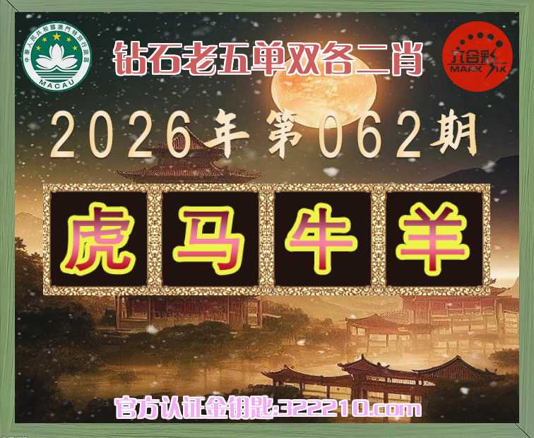 062期:《钻石老五》 🚡单双各二肖🚡【虎.马.牛.】开:羊24