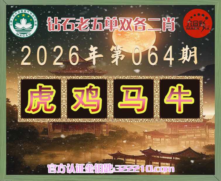 064期:《钻石老五》 🚡单双各二肖🚡【虎.鸡.马.】开:牛18
