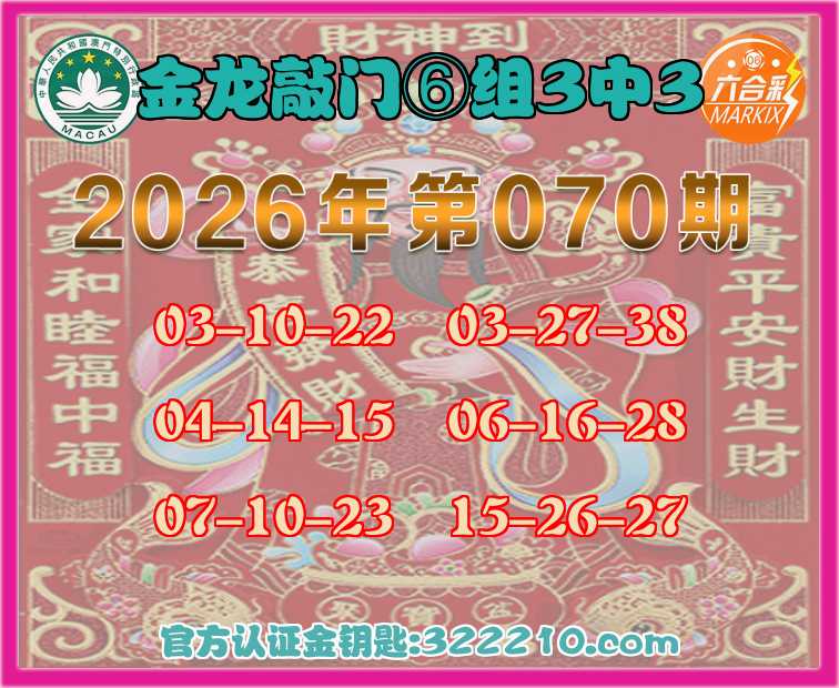 070期:《金龙敲门》 ☝️⑥组3中3☝️
