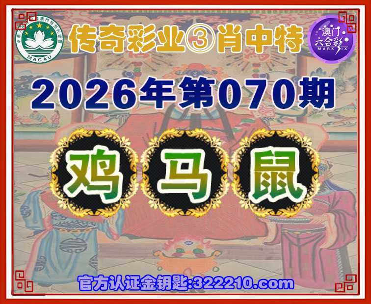 070期:『传奇彩业』 🕯③肖中特🕯【鸡..鼠】开:马25